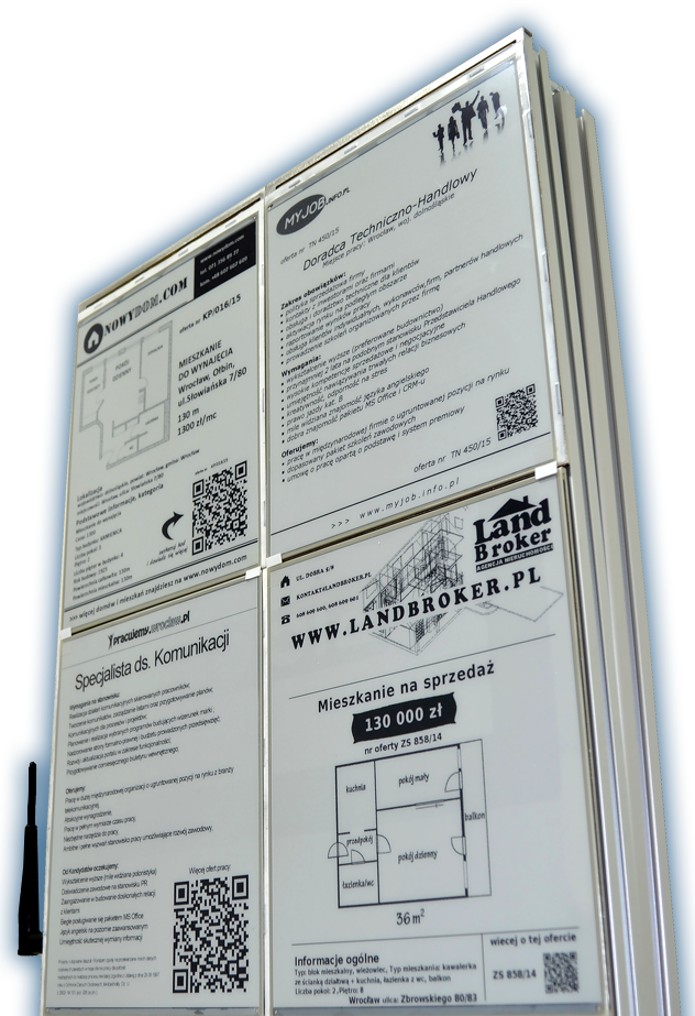To szybka komunikacja do wielu miejsc oddalonych od centrali. Np. lokalne oddziały urzędów, osiedla mieszkaniowe, gabloty na terenach uczelni lub placówek medycznych, czy tablice biur nieruchomości w atrakcyjnych lokalizacjach miast.